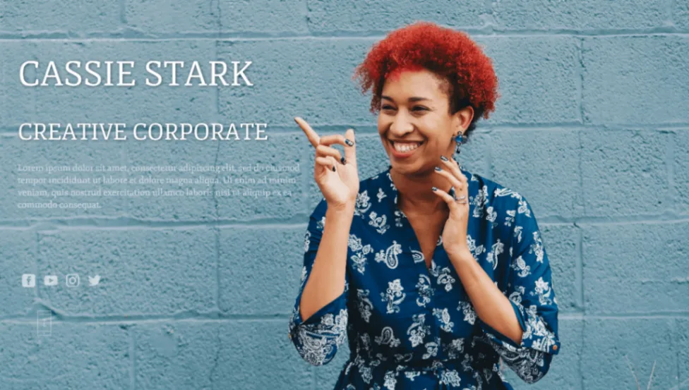 One-page professional portfolio template for solo workers and freelancers. Features professional profile headline, bio section, skills showcase with proficiency bars, contact information, contact form...