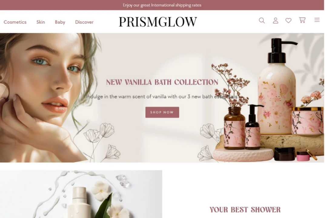 Beauty eCommerce template for cosmetics and skincare brands. Features product collections, trending items, best sellers, new arrivals, loyalty rewards program, customer testimonials, blog section, and...