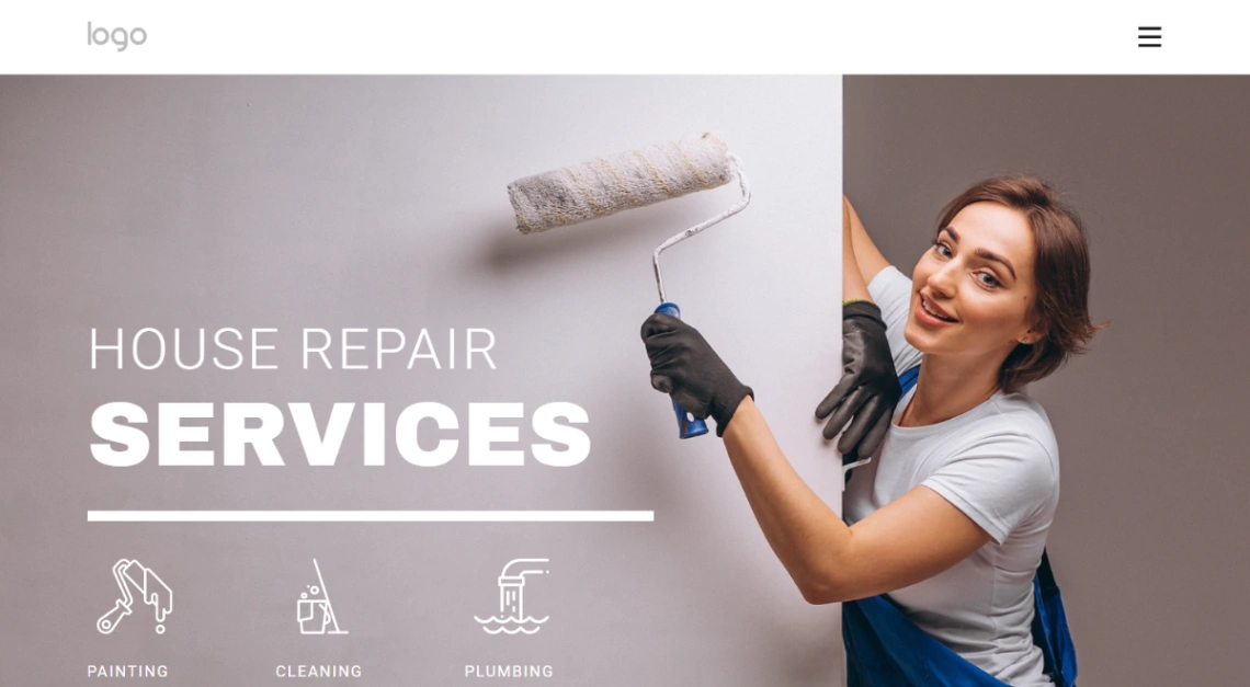 House repair and construction company website template for contractors and builders. Features project galleries, service descriptions, pricing sections, client testimonials, contact forms, and team in...