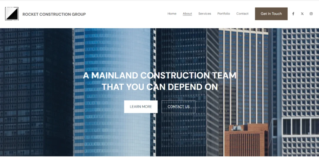 Professional construction company template featuring project showcase, service offerings, team information, and contact details. Includes portfolio gallery, testimonials, service descriptions, call-to...