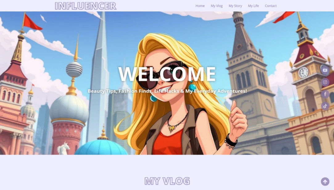 Vibrant and modern layouts define this digital environment for lifestyle creators and vloggers. Integrated social grids and video showcase sections provide a professional platform to highlight tutoria...