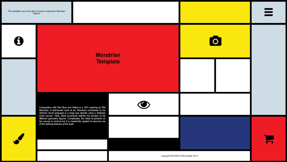 Geometric abstract layouts and bold primary-color blocks define this digital environment for artists and art historians. Integrated flex grids and thick black borders provide a professional platform t...