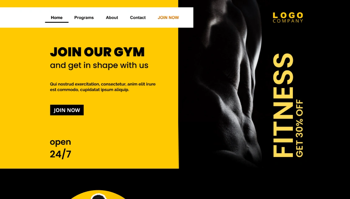 Gym owners can use this high-energy design to attract new members. It features specialized sections for personal training, weight loss programs, and group fitness classes. The layout includes location...