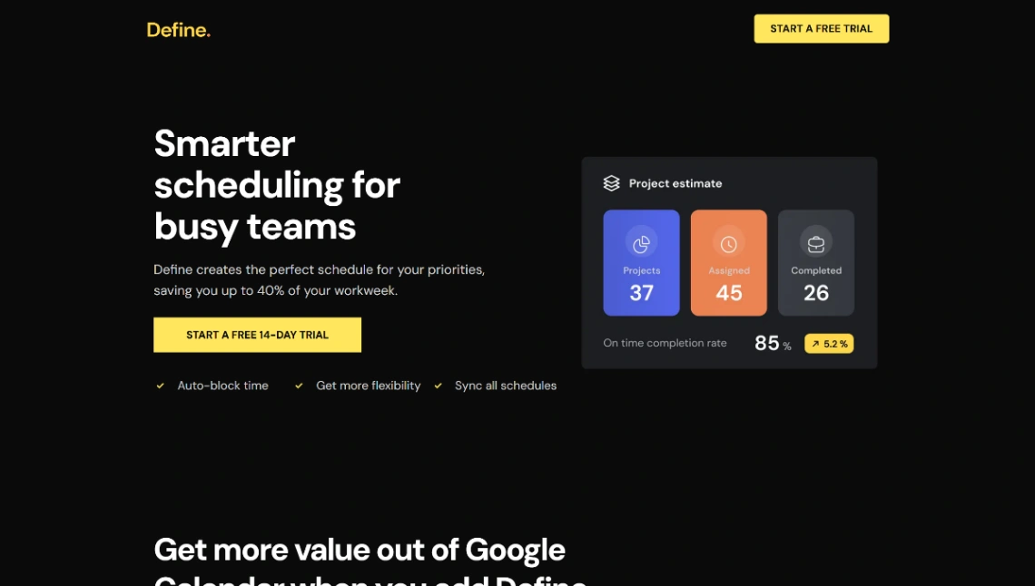 Modern SaaS landing page template for appointment booking software and productivity tools. Features interactive scheduling previews, integration grids, and multi-tier pricing tables built to streamlin...