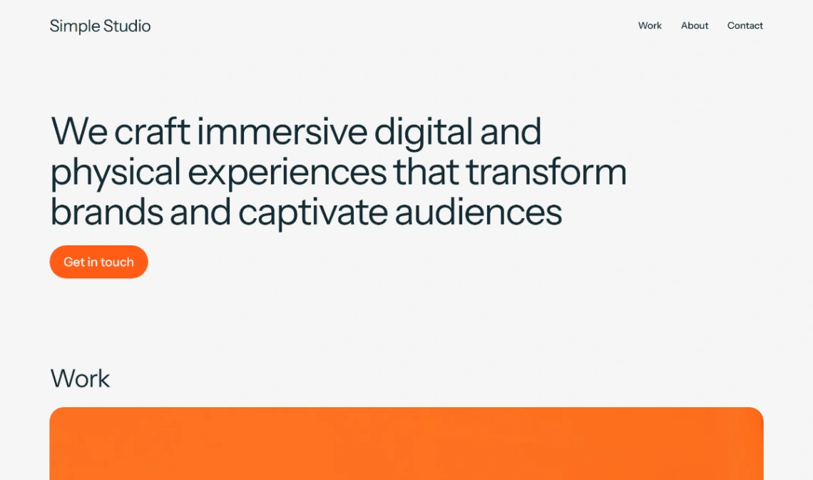 Simple Studio is a minimalist Creative template for design studios, freelancers, and small boutique agencies. Features a clean "Work" showcase, immersive brand-story sections, and high-impact contact...
