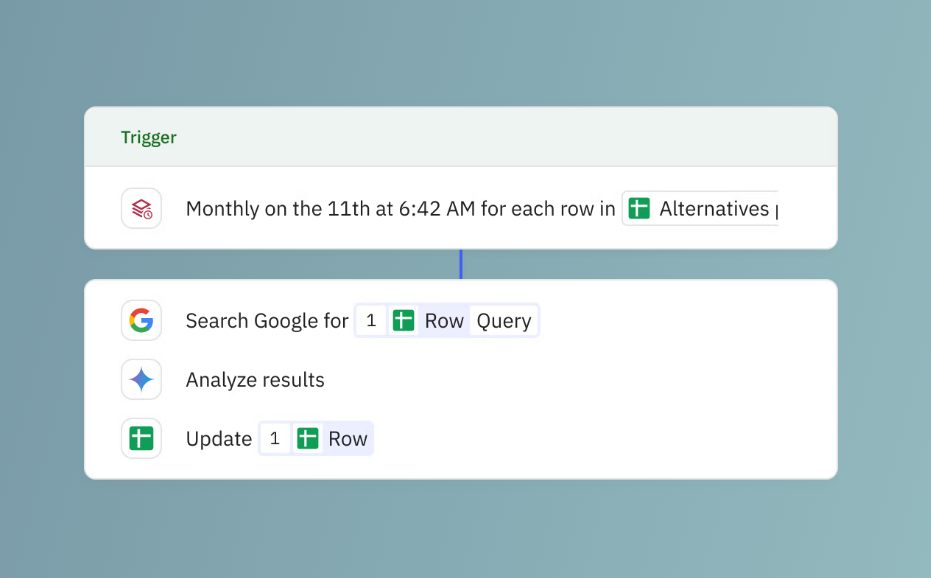 Automatically track website search rankings for key keywords across Google. This template uses AI to analyze search results, identify top 10 URLs, determine your site position, and update Google Sheet...
