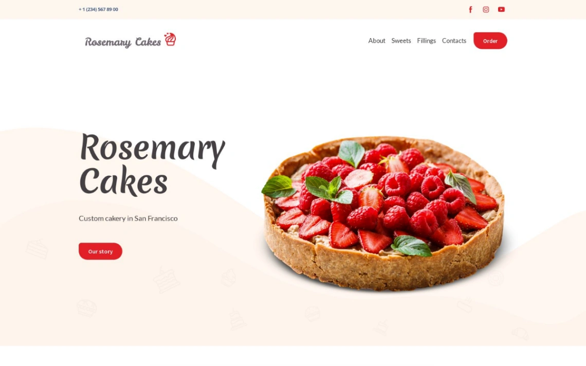 Elegant bakery eCommerce template for cake makers and pastry shops. Features hero section with signature cake showcase, baker bio, cake category selection, custom decoration options, product gallery,...